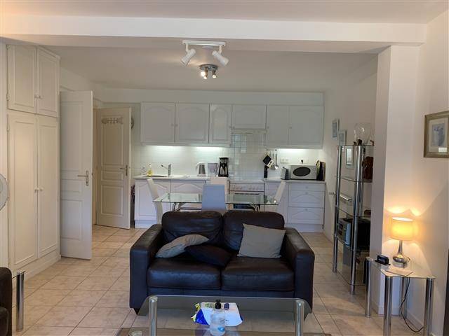 A larrière de la maison, en rez de jardin : un appartement de 55 m² environ avec une belle pièce principale de 28 m² , une chambre en suite, dressing