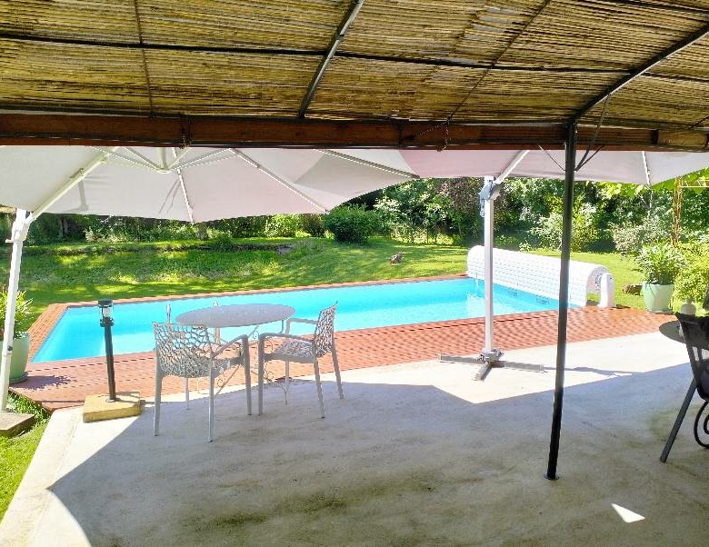 Maison principale avec véranda (26m² environ) et piscine.(8x4m) avec couverture rigide.