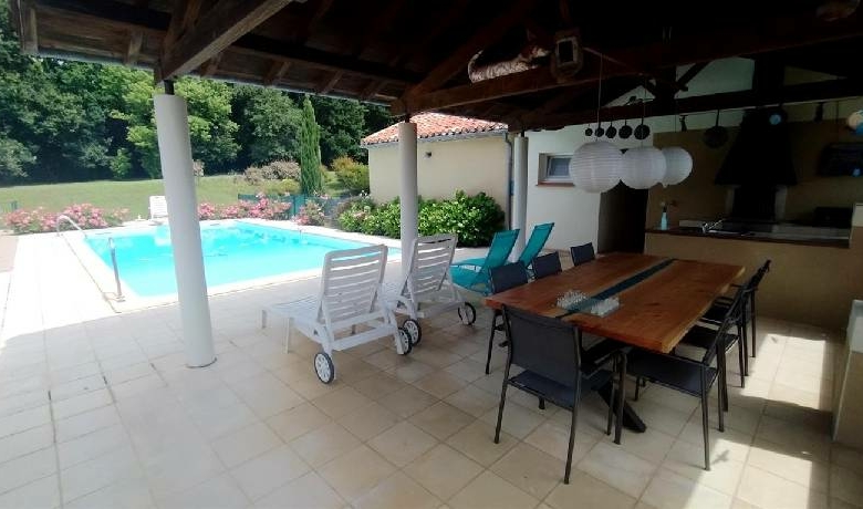 Piscine, cuisine extérieure couverte, grand jardin de près de 1,5ha dont 0,5ha de forêt.