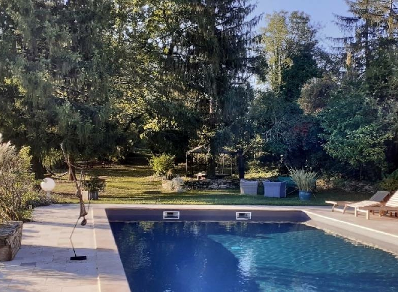Nichée sur les hauteurs en bordure de son village classé, cette propriété de charme avec piscine et grande cuisine d’été, sur un terrain arboré de 3 000 m2 env. (magnifique éclairage de nuit), calme et sans vis-à-vis, offre une belle vue surplombante, dans un environnement calme et bucolique.