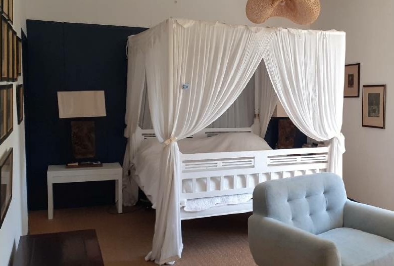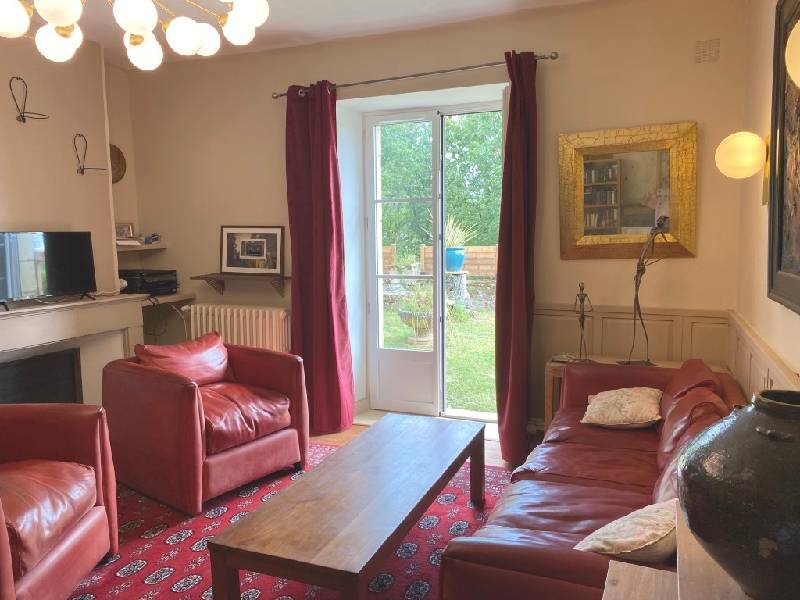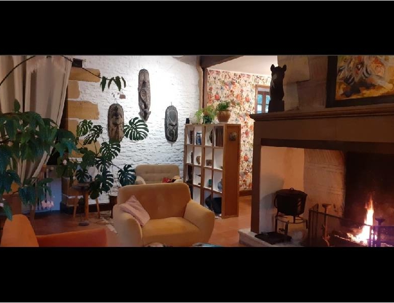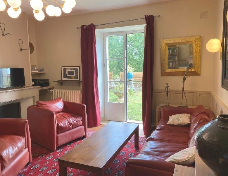 Un salon avec cheminée / salle à manger (52m2) traversant sur 3 côtés, communique avec une cuisine équipée, les deux avec portes fenêtres sur une grande terrasse carrelée ; Une bibliothèque (24 m2) avec cheminée, une chambre (20 m2) avec dressing, une salle deau / WC, donnent chacune sur la terrasse enherbée par une porte fenêtre. Une buanderie complète le RdC, et pourrait être utilisée pour faire de la chambre une suite parentale.