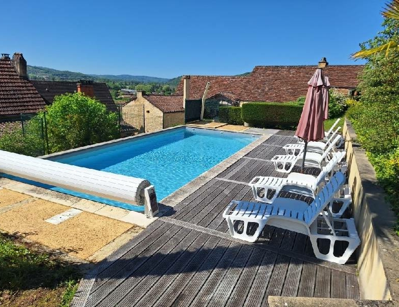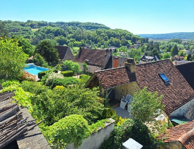 Une position de rêve pour cette superbe propriété de 3 800 m2 avec vue panoramique sur la vallée de la Dordogne, sans aucune nuisance, et pourtant au centre dun des villages médiévaux commerçants les plus prisés du Périgord Noir. Le jardin