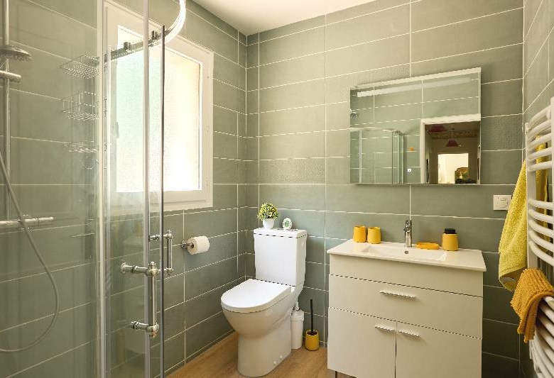 A l’extérieur : salle d’eau et wc.