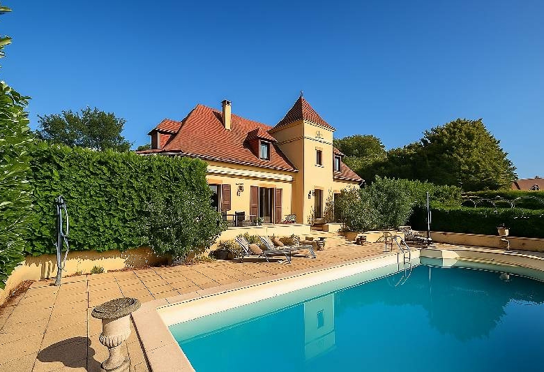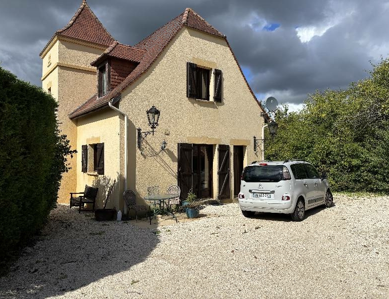 Située dans un environnement calme et ensoleillé, cette maison dhabitation construite en 2006 en style périgourdine avec tour offre environ 140 m² habitables et se trouve sur une parcelle denviron 3300 m², entretenue et arborée (noyers). Elle dispose dune terrasse couverte, dun store, dune piscine chauffée et dun garage indépendant. Maison en bon état, prêt à vivre.