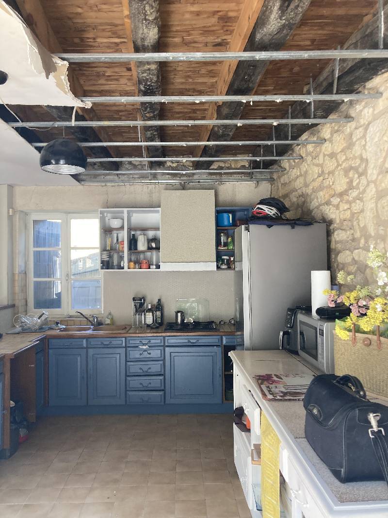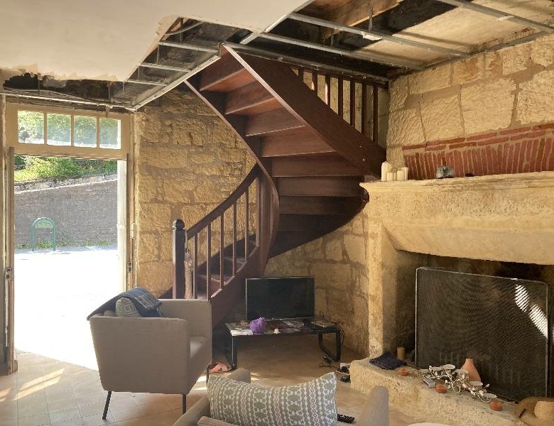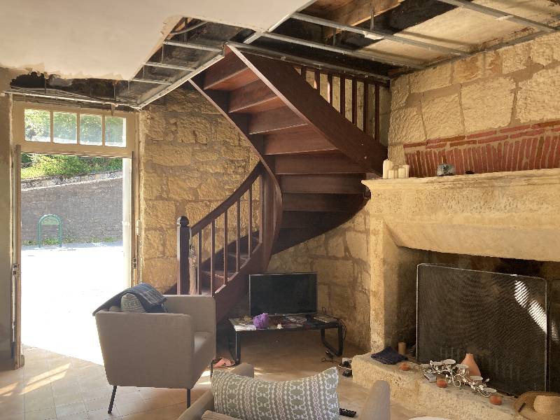 jolie maison dans le village de campagne, avec une grande piéce à vivre avec cuisine ouverte de 40 m² , comprenant une trés jolie cheminée, porte à l’arriere donnant sur un petit jardin clos de mûrs sans vis à vis,