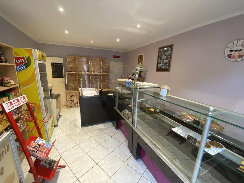 RDC ; magasin (19,3m² env.), hall (5,4m² env.), deuxième magasin/stockage (21,8m² env.) espace commercial (ancien boulangerie:pâtisserie, 71m² env.).