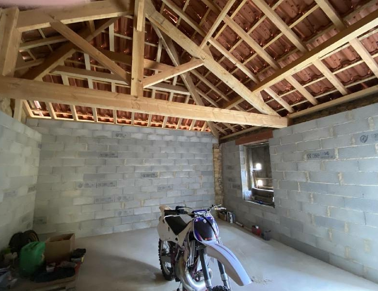 Terrasse avec vieux cheminée de 12e siècle (32m² env). Tout a légout.