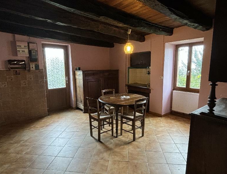 Celle-ci vous offre : salle-à-manger/cuisine (18m² environ) avec cantou et poêle a bois, séjour (14m² environ), trois chambres (6/10/11 m² environ), salle-d eau (11m² environ) avec WC, hall.