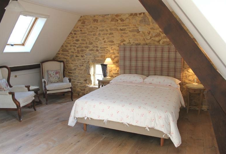 – au rdc : cuisine équipée, pierres apparentes, porte-fenêtre sur le jardin (19 m²), superbe pièce de vie avec cheminée insert, porte-fenêtre sur le jardin (50 m²), 1 chambre (10 m²) ensuite (salle de bains et douche et wc ; 6 m²), avec placards intégrés, parquet au sol, buanderie, Wc séparé avec lave-mains.