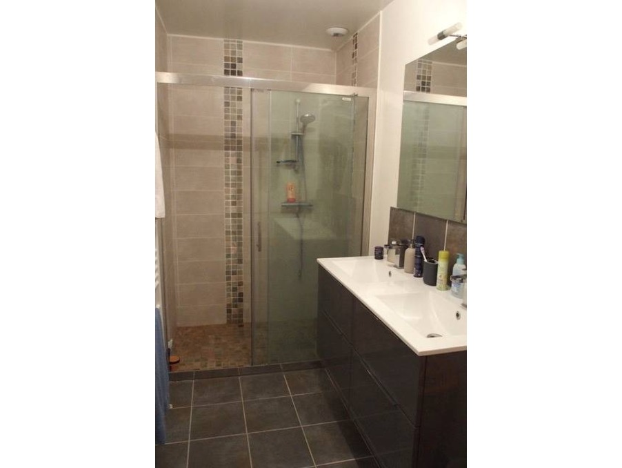 1 appartement T3 (68 m2) au 1er étage, ouvrant sur une terrasse (33 m2) : salon / cuisine aménagée (33 m2) cuisson induction, 2 chambres (12 m2), salle deau avec 2 vasques, WC avec lave main