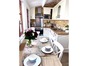 - au 1er étage : cuisine équipée (env. 8 m²) avec porte-fenêtre sur la terrasse, séjour avec pierres et poutres apparentes, parquet au sol (20 m²).