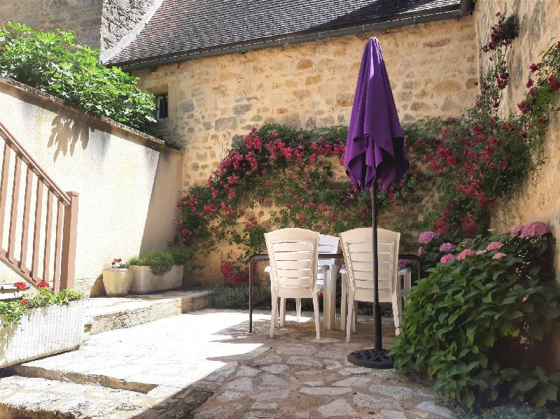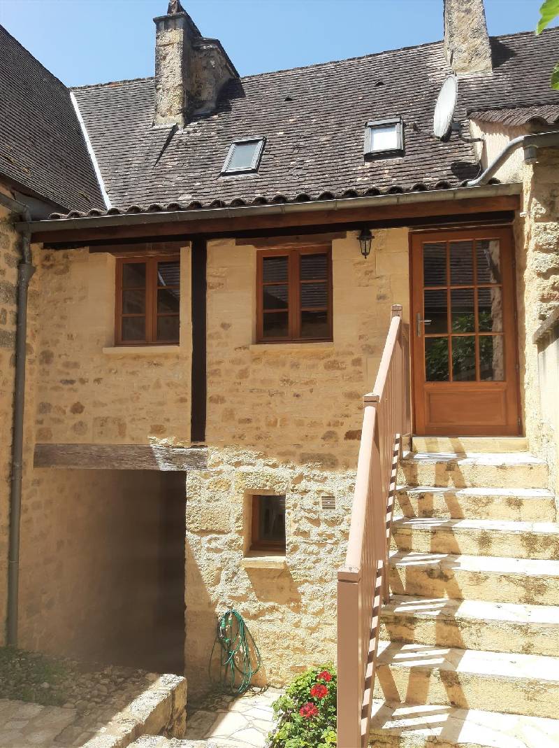 Au coeur de la bastide de Domme, classée parmi les Plus beaux villages de France, très jolie maison en pierre en bon état avec une agréable terrasse fleurie.