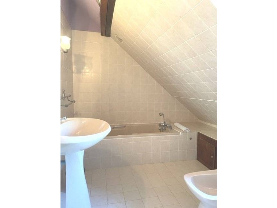 - au 1er étage : 2 chambres de 9 m² chacune, salle de bains, Wc avec lave-mains.