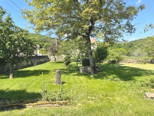A quelques minutes de Gourdon, dans un petit hameau tranquille, jolie maison en pierre à rafraîchir avec un très agréable jardin arboré et plat de 845 m².