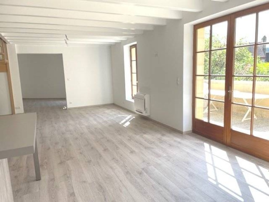 - en rdc : cuisine équipée neuve ouverte sur séjour/salle-à-manger/espace bureau, porte-fenêtre sur la terrasse (conduit de cheminée existant) (61 m²), buanderie avec point d'eau, Wc séparé avec lave-mains.