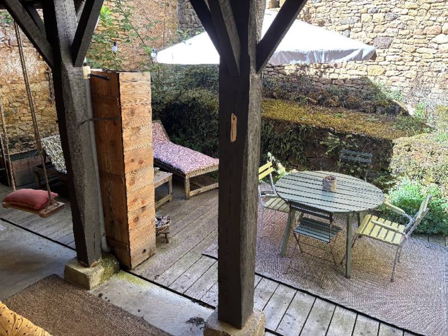 À lextérieur, une cour intime avec terrasse couverte permet de profiter des beaux jours, complétée par une buanderie et un WC.