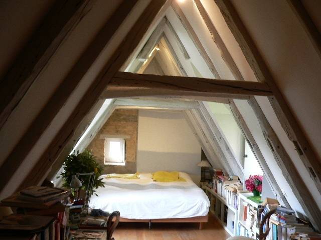 Etage : chambre (12 m² environ), WC, salle de bains avec douche, chambre (8m² environ),