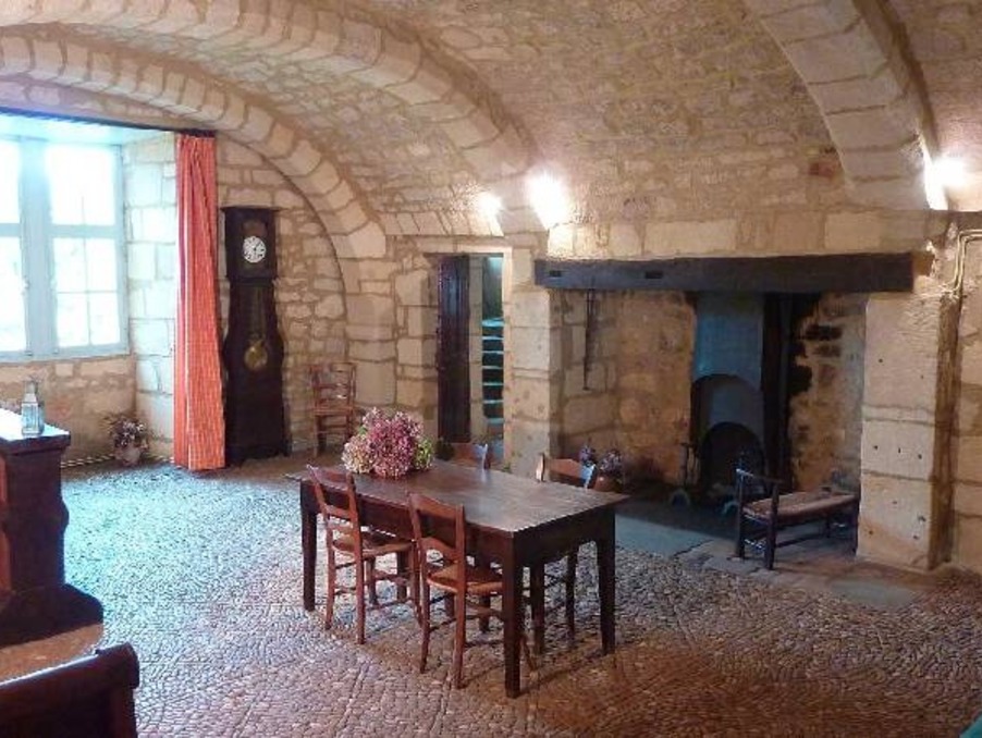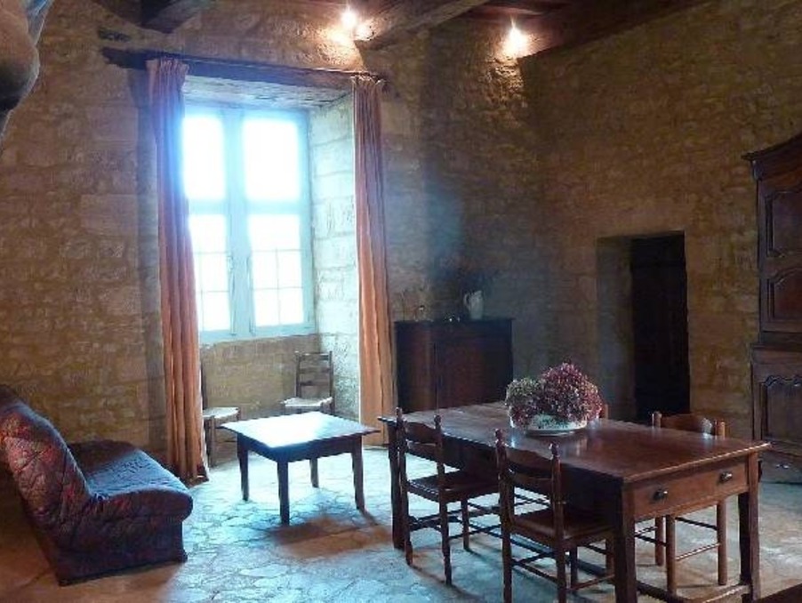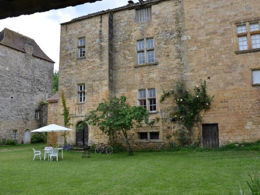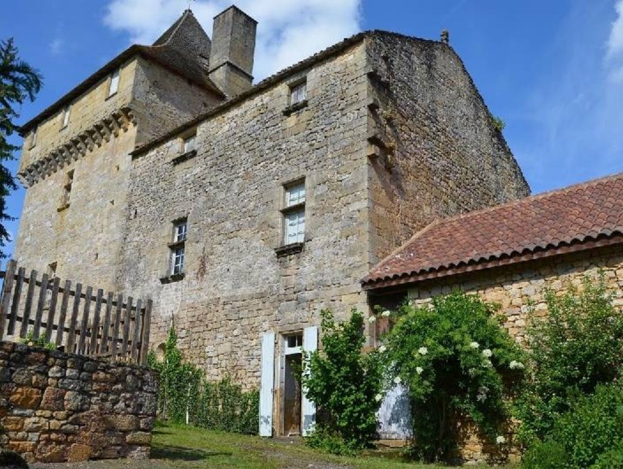 Ce corps de logis du XVe (150 m2) fait partie dun château médiéval en Sarladais, en bordure de son antique village touristique et commerçant ; il jouxte une tour carrée à mâchicoulis (hors vente), donne sur une cour jardin (300 m2), et dispose de plus dun ha de terrain. (extensible à 2,6 ha).