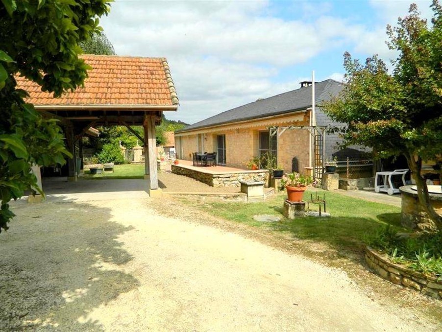 Son terrain clôturé sur lequel donne les pièces de vie au 2ème étage, offre terrasses, piscine (4x10), abri (50 m2) et dépendance (20 m2). ; il y a aussi une dépendance en pierre (50 m2) au niveau de la rue.