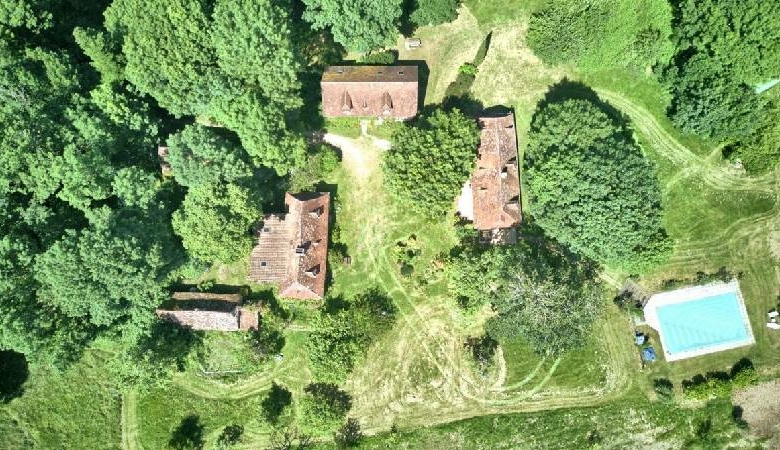 Voormalige boerderij uit 1788, drie charmant gerestaureerde huizen rond een binnenplaats. Ca. 360m² woonoppervlak met 8 slaapkamers. Gelegen op een rustige locatie biedt dit pand rust en stilte zonder volledig geïsoleerd te zijn. Gelegen op een terrein van ca. 7.300 m² met prachtig vrij uitzicht over het landschap, een zwembad (10×12) en bijgebouwen.